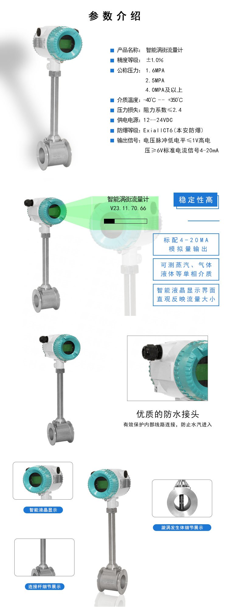 渦街流量計的精度也有好幾個等級,而且是按照測量介質(zhì)來分的。管道式的渦街流量計,如果是測液體的話,測量精度可以達到1.0級,測氣體的話,精度可以達到1.5級。如果是插入式的渦街流量計,精度可以達到1.5級和2.5級。